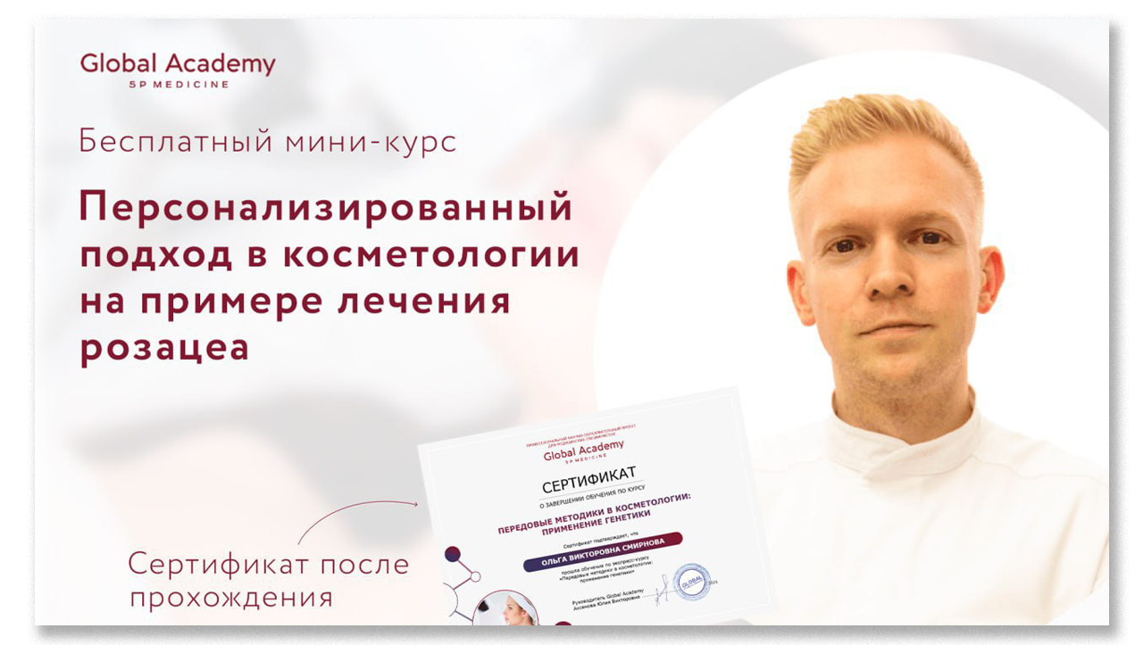 Всем, кто зарегистрировался на вебинар, дарим мини-курс А.А. Федорова «Персонализированный подход в косметологии на примере лечения розацеа».